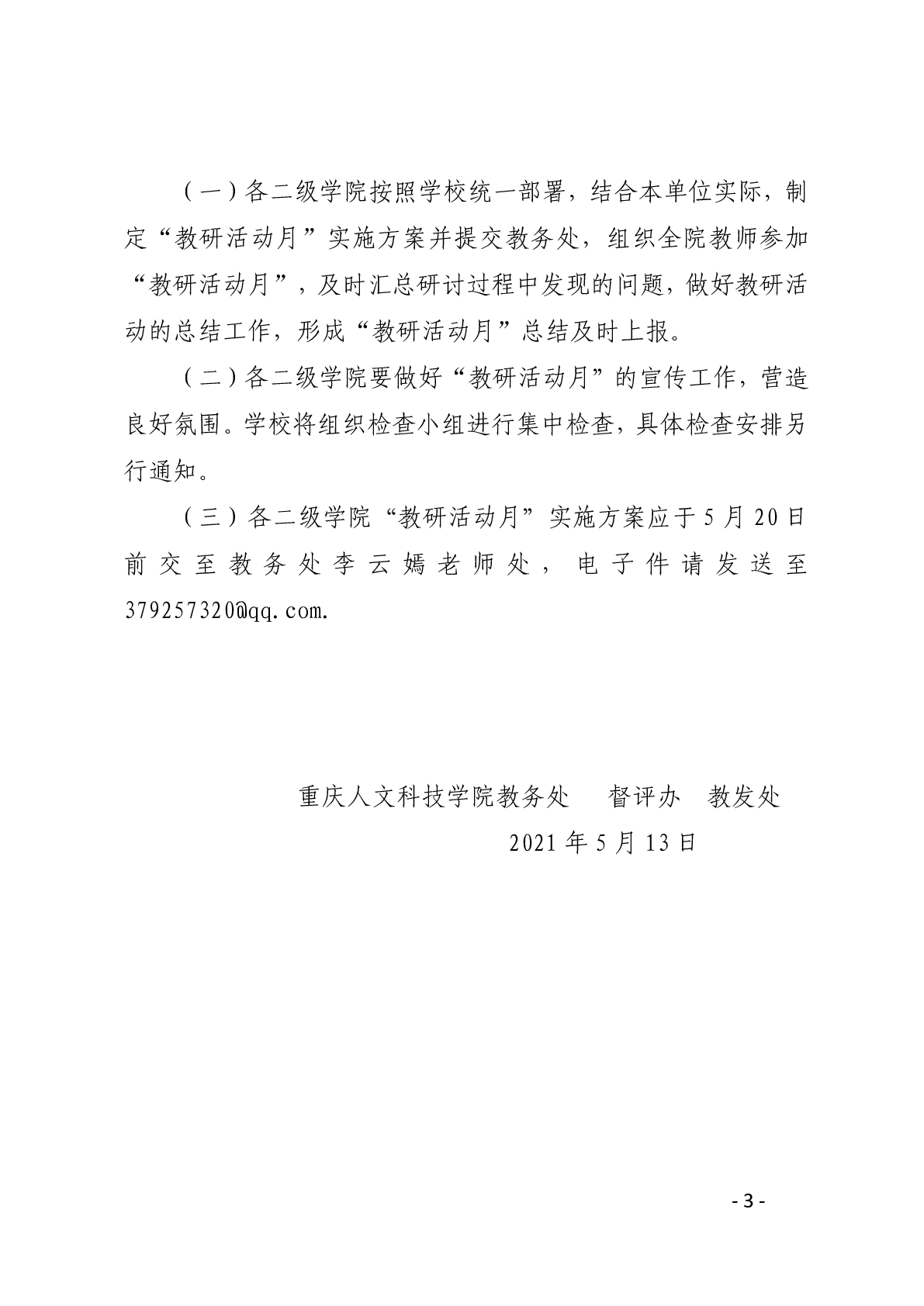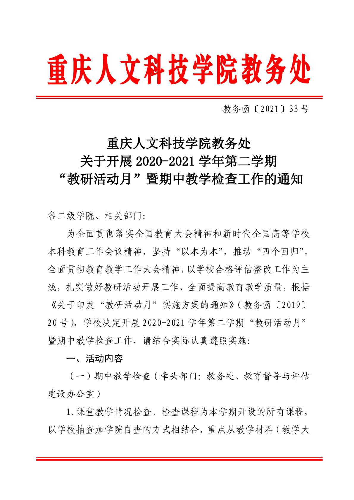 关于开展2020-2021学年第二学期“教研活动月”暨期中教学检查工作的通知