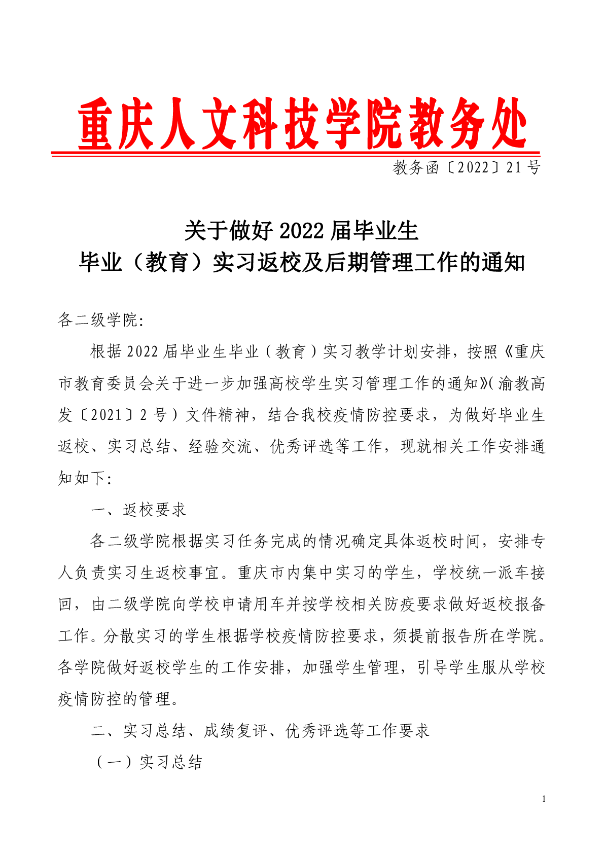 关于做好2022届毕业生毕业(教育)实习返校及后期管理工作的通知