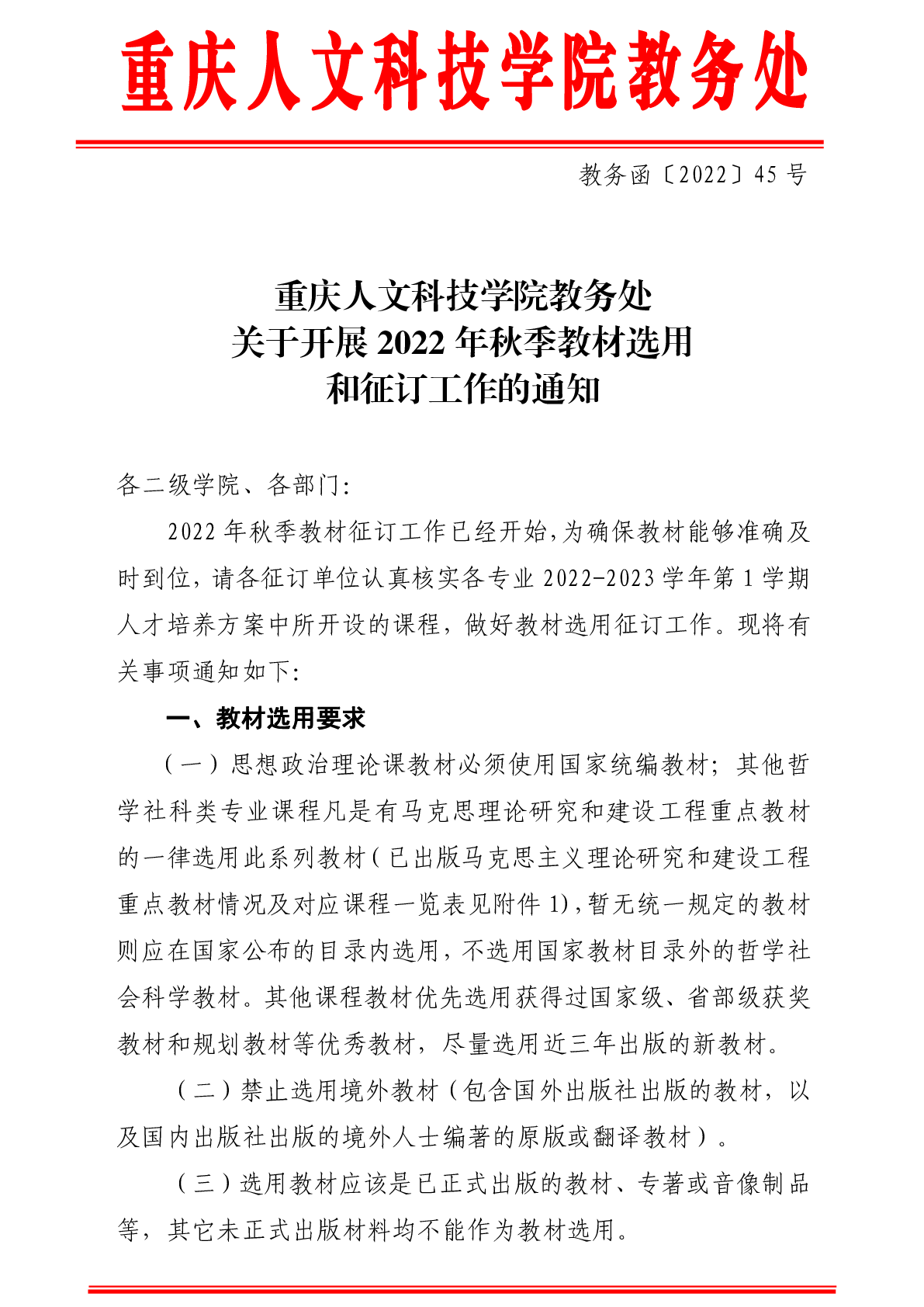 必赢3003no1线路检测中心关于开展2022年秋季教材选用和征订工作的通知