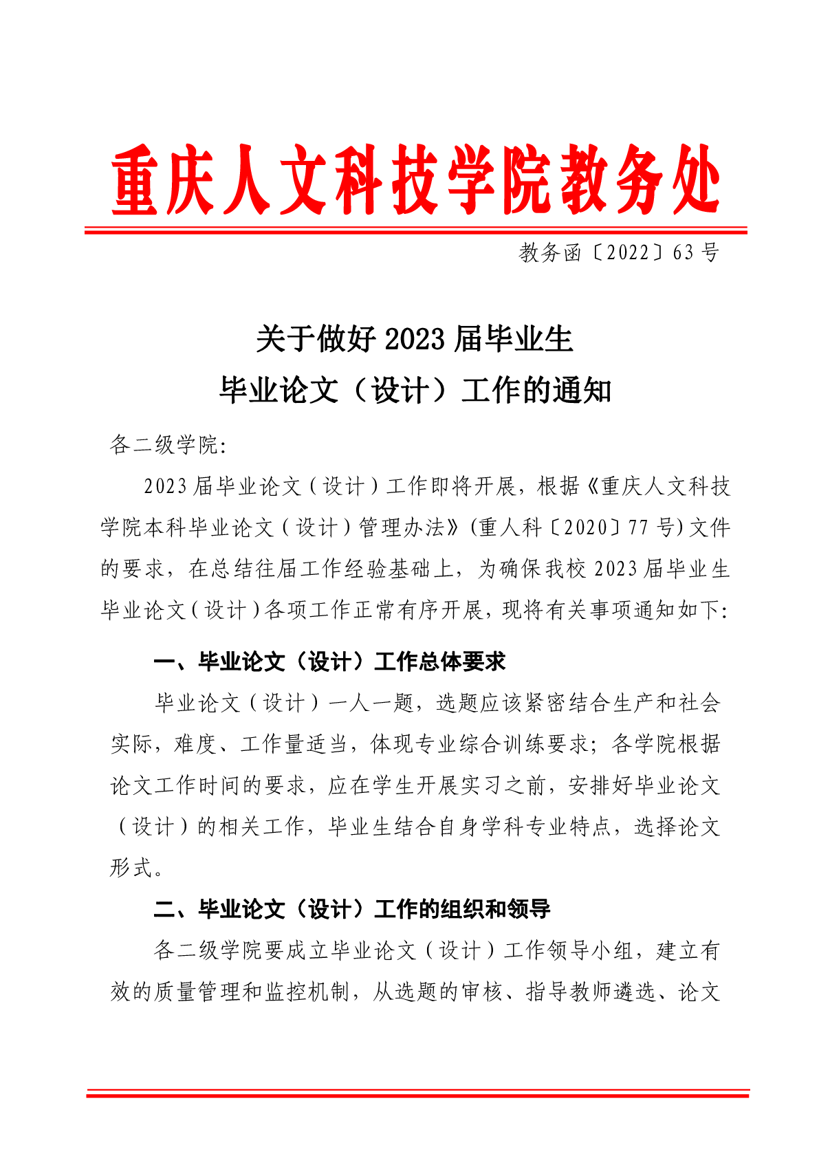 关于做好2022届毕业论文(设计)工作的通知