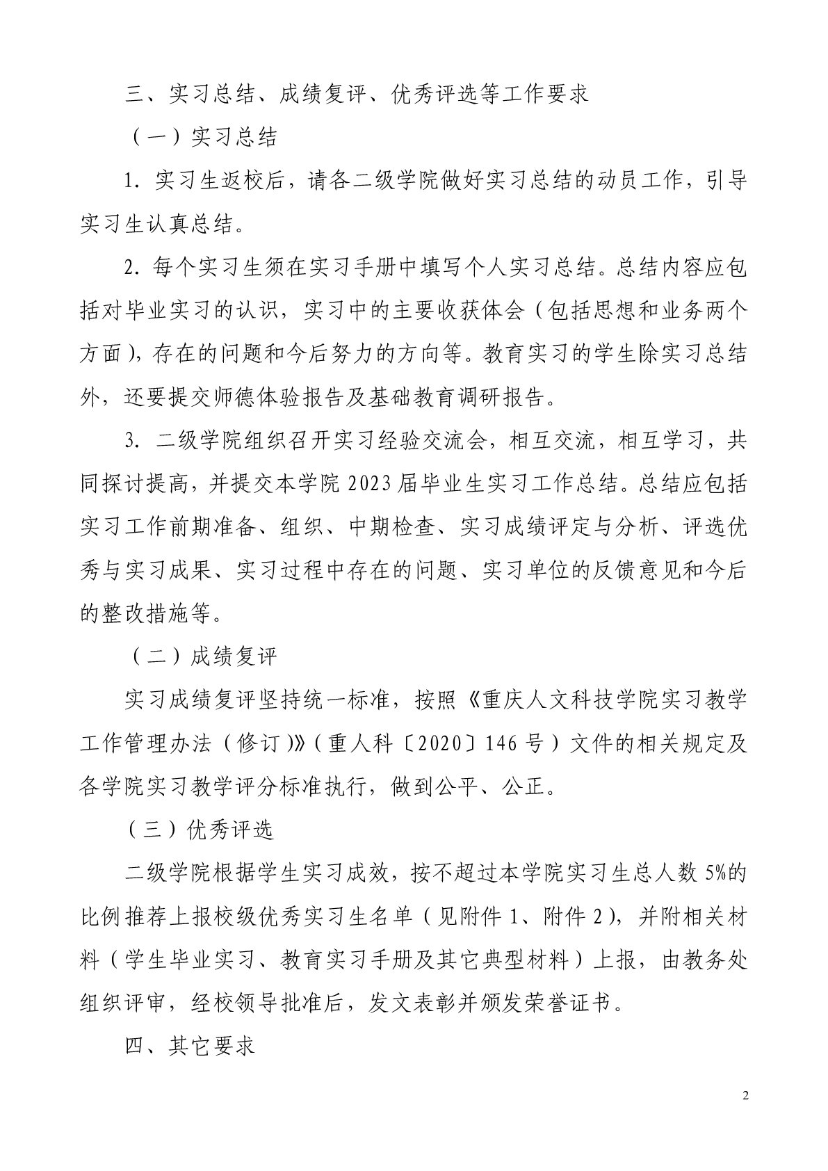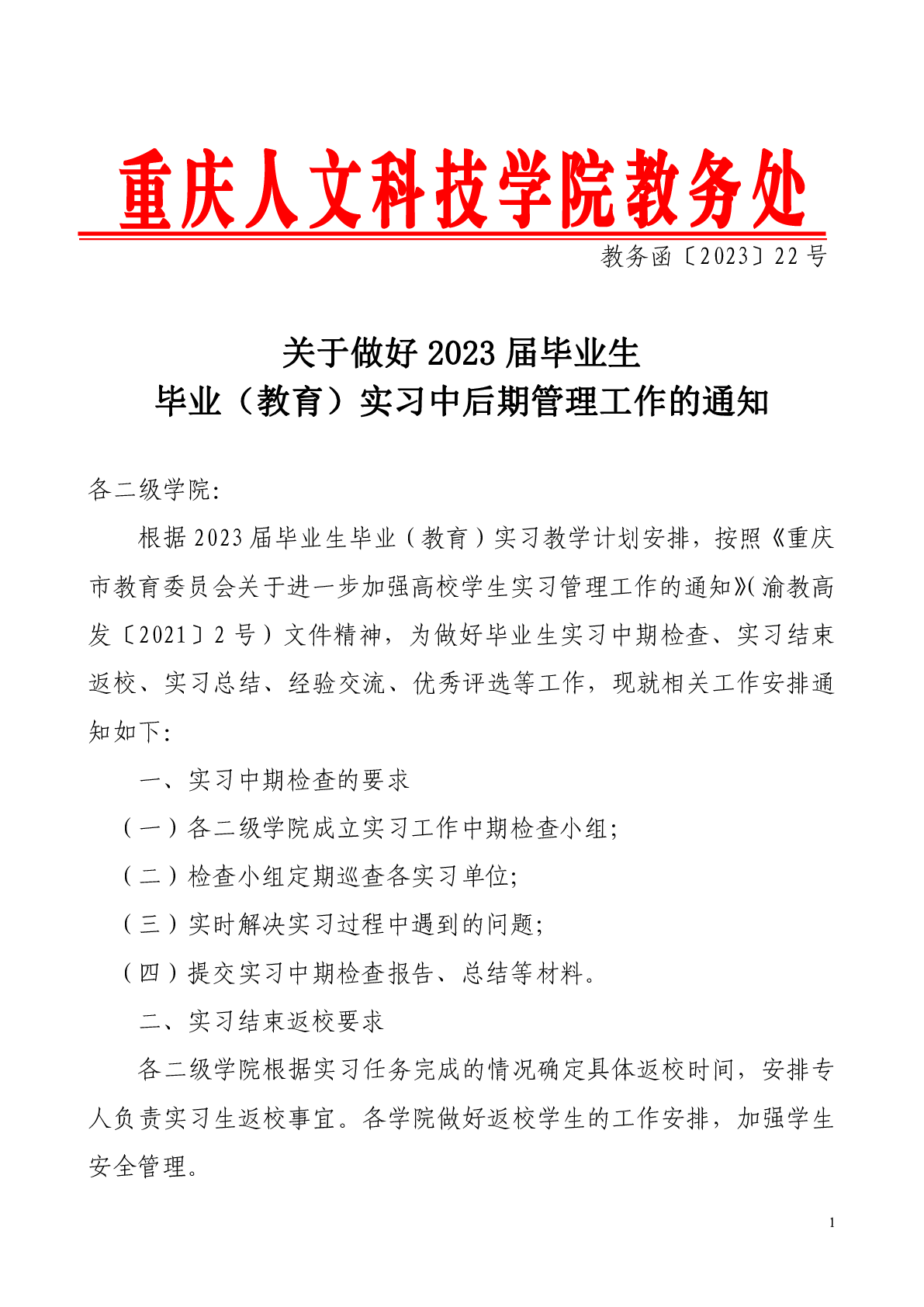 关于做好2023届毕业生毕业(教育)实习中后期管理工作的通知