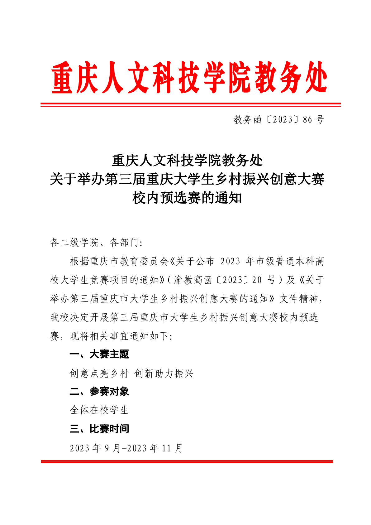 必赢3003no1线路检测中心关于举办第三届重庆大学生乡村振兴创意大赛校内预选赛的通知
