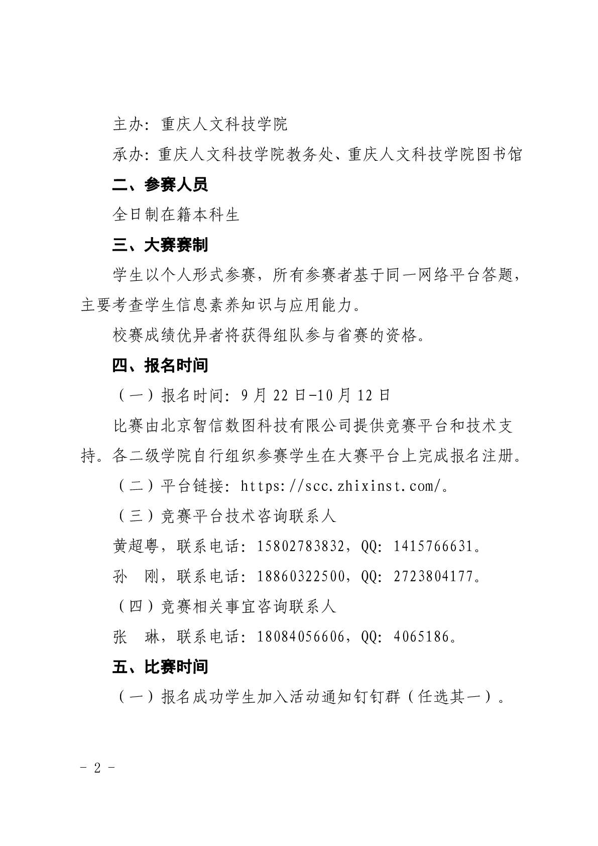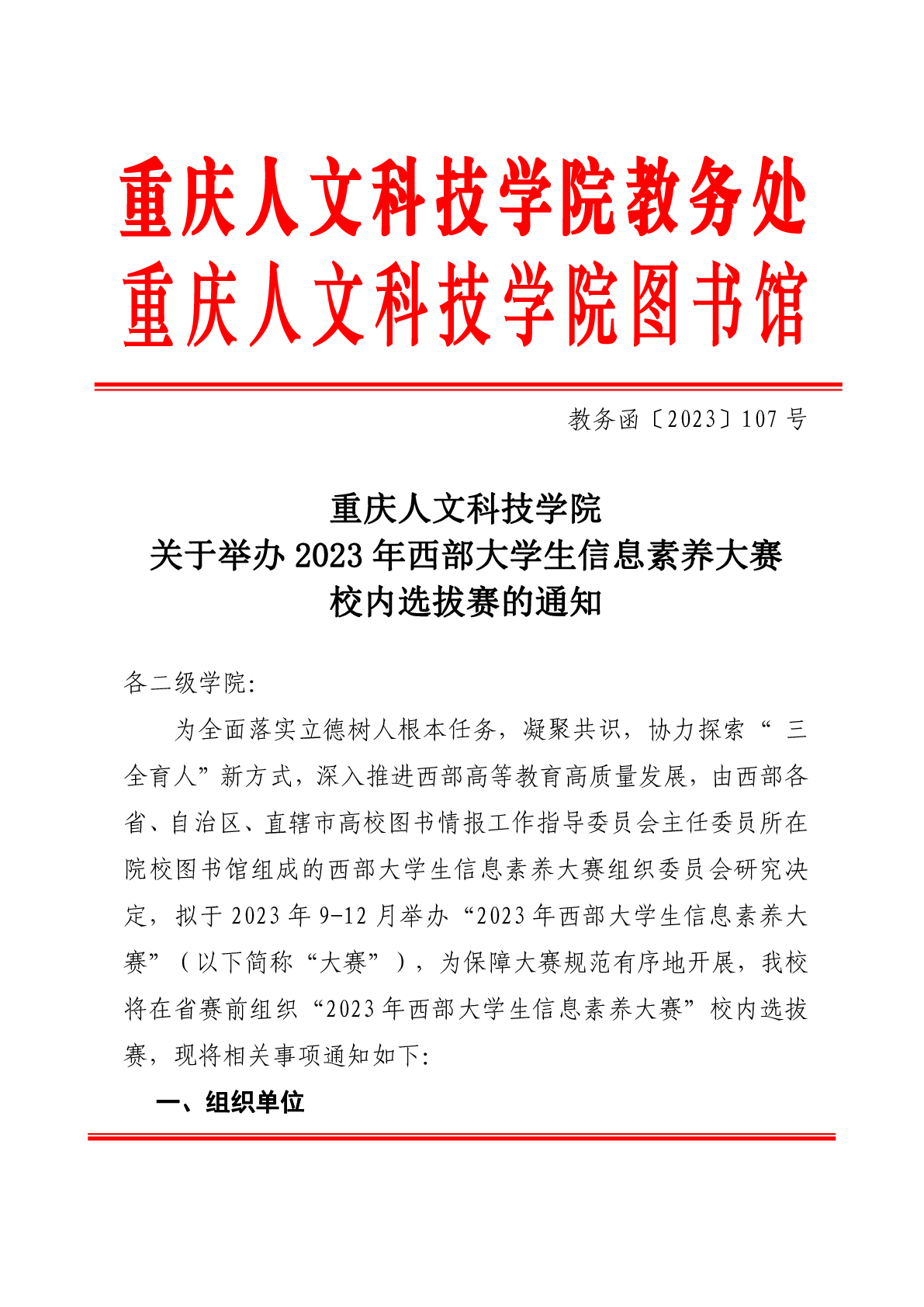 重庆人文科技学院关于举办2023年西部大学生信息素养大赛校内选拔赛的通知