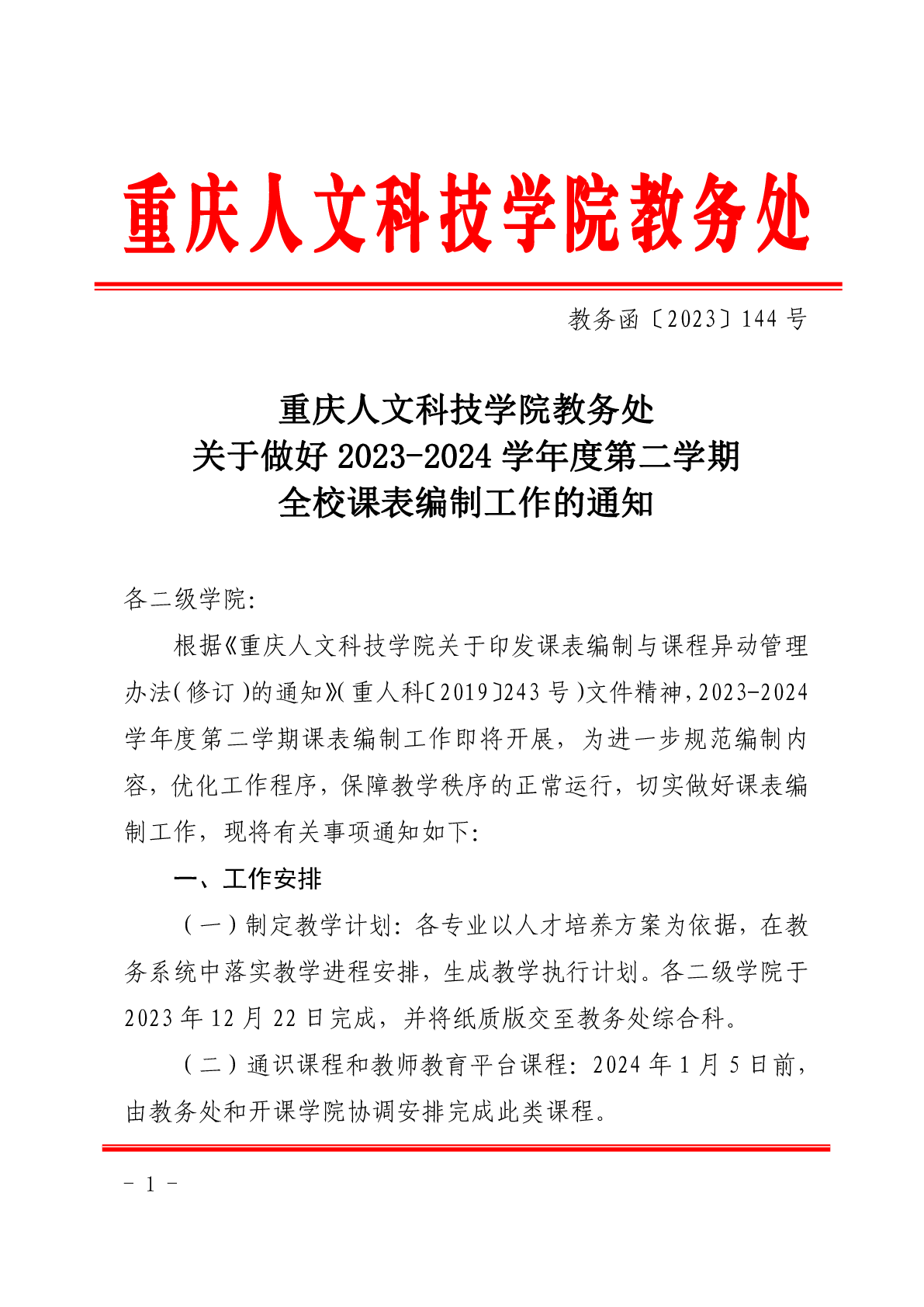 必赢3003no1线路检测中心关于做好2023-2024学年度第二学期全校课表编制工作的通知