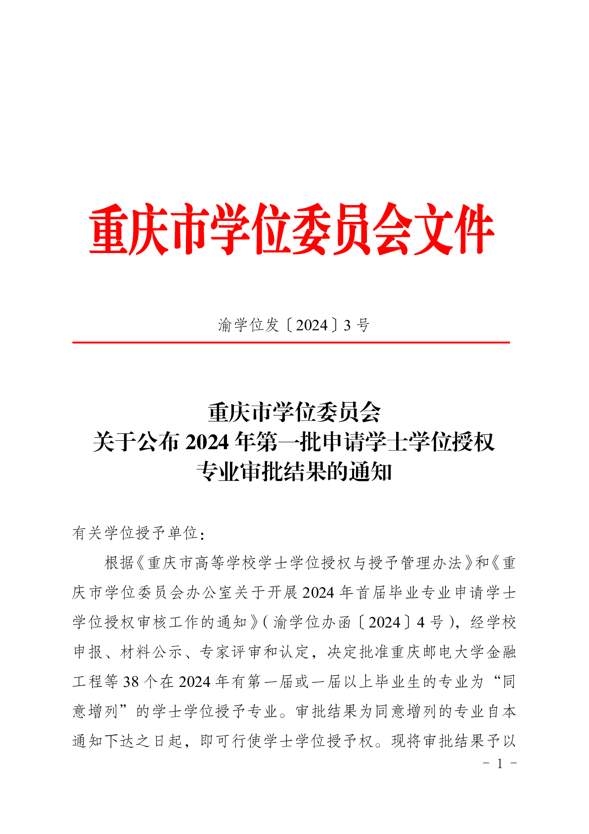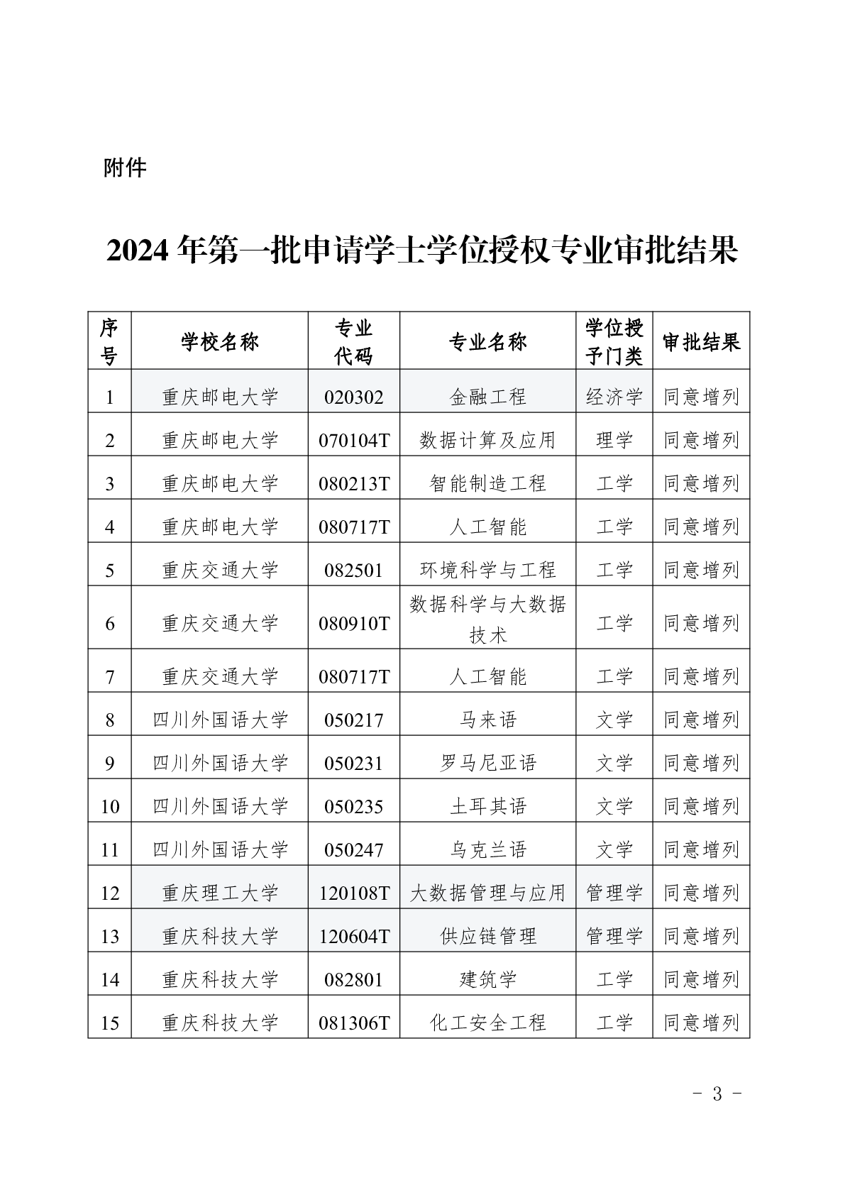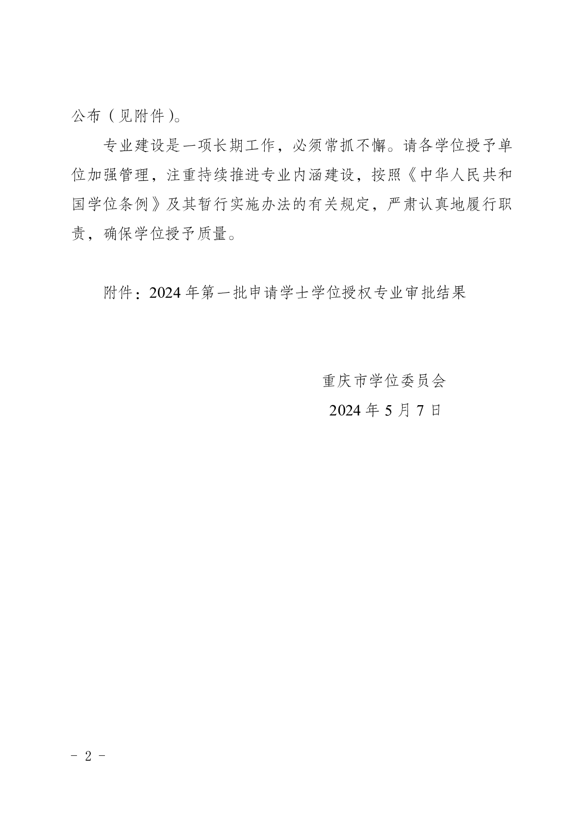 关于公布2024年第一批申请学士学位授权专业审批结果的通知