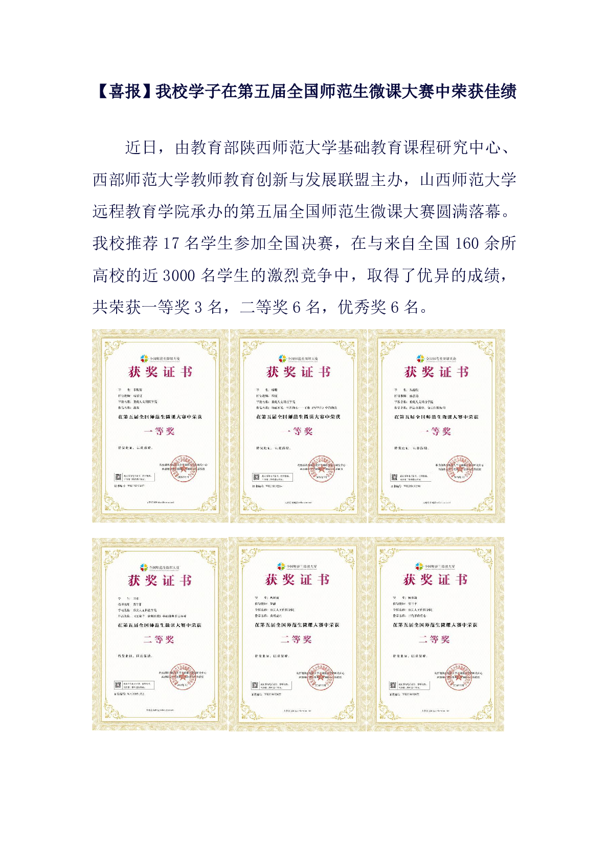 【喜报】我校学子在第五届全国师范生微课大赛中荣获佳绩